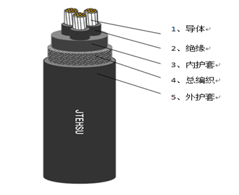 銅芯乙丙橡皮絕緣橡膠內(nèi)護(hù)套纖維總編織聚氨脂彈性體外護(hù)套卷筒用電纜