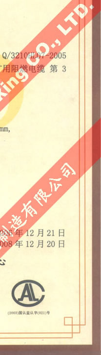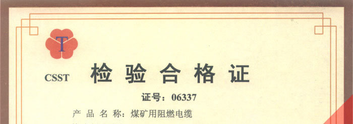 國家采煤機械質(zhì)量監(jiān)督檢驗中心檢驗合格證--煤礦用阻燃電纜(MHYV,MHYVP)