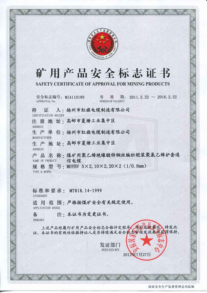 煤礦礦用產(chǎn)品安全標(biāo)志證書-MHYBV0.8