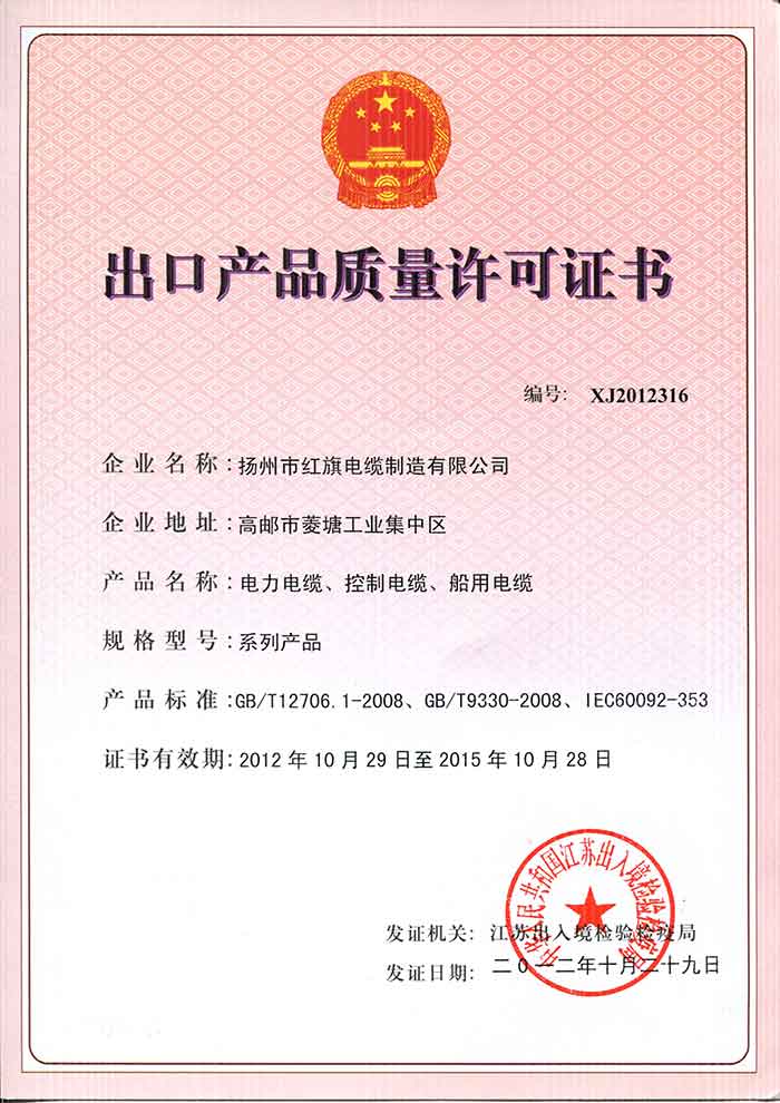 出口產(chǎn)品質(zhì)量許可證書