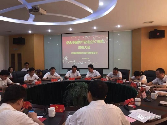 2018年6月30日上午,揚(yáng)州市紅旗電纜集團(tuán)召開(kāi)慶祝中國(guó)共產(chǎn)黨成立97周年暨預(yù)備黨員轉(zhuǎn)正大會(huì),會(huì)議由集團(tuán)黨支部書(shū)記陳佑欣同志主持,集團(tuán)所有黨員、正部級(jí)以上同志參加了本次會(huì)議。